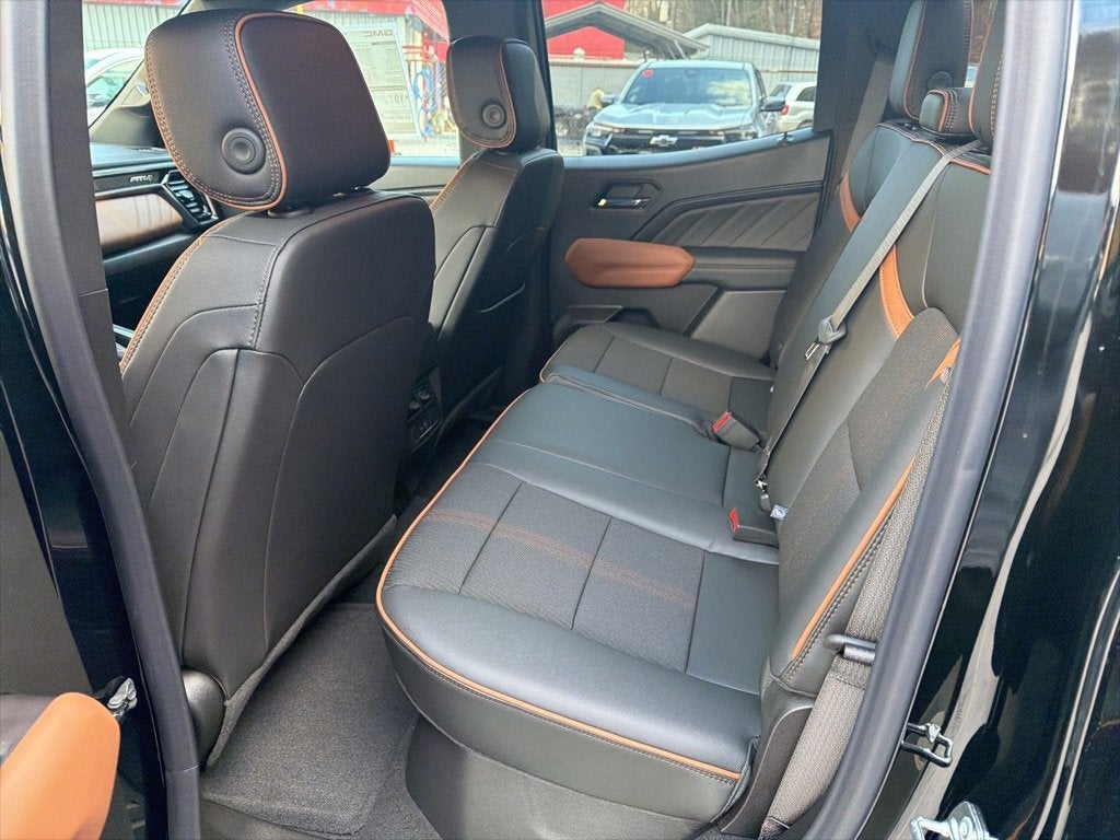 **Check out all of these great options this vehicle has to offer!** Canyon Safety Plus Package (Blind Zone Steering Assist with Trailering, Rear Cross Traffic Braking, and Ultrasonic Rear Park Assist), 120-Volt Bed Mounted Power Outlet, 2 1st Row USB Charge/Data Ports, 2 Rear USB Ports in Center Console (Charge-Only), 3.42 Rear Axle Ratio, 4-Way Manual Front Passenger Seat Adjuster, 4-Wheel Disc Brakes, 6 Speakers, 6-Speaker Audio System Feature, 8-Way Power Driver Seat Adjuster, ABS brakes, Air Conditioning, Alloy wheels, AM/FM radio: SiriusXM with 360L, Apple CarPlay/Android Auto, Auto High-beam Headlights, Auto-dimming Rear-View mirror, Automatic Emergency Braking, Automatic Stop/Start, Automatic temperature control, Brake assist, Bumpers: body-color, Canyon Pro Safety, Cloth/CoreTec Seat Trim, Compass, Delay-off headlights, Driver and Front Passenger Illuminated Visors, Driver door bin, Driver Mode Selector, Driver vanity mirror, Dual front impact airbags, Dual front side impact airbags, Dual-Zone Automatic Climate Control Air Conditioning, Electronic Stability Control, Emergency communication system: OnStar, EZ-Lift and Lower Tailgate, Following Distance Indicator, Forward Collision Alert, Front anti-roll bar, Front Bucket Seats, Front Center Armrest, Front dual zone A/C, Front fog lights, Front LED Fog Lamps, Front Passenger Seatback Map Pocket, Front Pedestrian and Bicyclist Braking, Front reading lights, Front wheel independent suspension, Heated door mirrors, Heated Driver and Front Passenger Seats, Heated front seats, Illuminated entry, Inside Rear-View Auto-Dimming Mirror, IntelliBeam Automatic High Beam on/Off, Interior Overhead Courtesy Light with Dual Reading Lamp, Lane Keep Assist with Lane Departure Warning, Low tire pressure warning, MultiStow Tailgate Storage Compartment, Navigation System, Occupant sensing airbag, Off-Road Suspension, Outside temperature display, Overhead airbag, Overhead console, Panic alarm, Passenger door bin, Passenger vanity mirror, Power door mirrors, Power Driver Lumbar Control Seat Adjuster, Power driver seat, Power steering, Power windows, Radio data system, Radio: 11.3 Diagonal Premium GMC Infotainment System, Rear of Console 120-Volt Power Outlet, Rear reading lights, Rear step bumper, Rear window defroster, Remote keyless entry, Remote Vehicle Starter System, Security system, SiriusXM with 360L, Speed control, Speed-sensing steering, Split folding rear seat, Spray-on Bedliner with GMC Logo, Steering wheel mounted audio controls, Stop/Start System Disable Button Engine Control, Tachometer, Tailgate Keyed Cylinder Lock, Telescoping steering wheel, Til and Telescopic Manual Steering Column, Tilt steering wheel, Traction control, Trip computer, Variably intermittent wipers, Wheels: 18 x 8.5 Gloss Black Aluminum, and Wireless Apple CarPlay/Wireless Android Auto. Onyx Black AT4 4WD 8-Speed Automatic 2.7L I4 Turbocharged DOHC 16V LEV3-SULEV30 310hp
